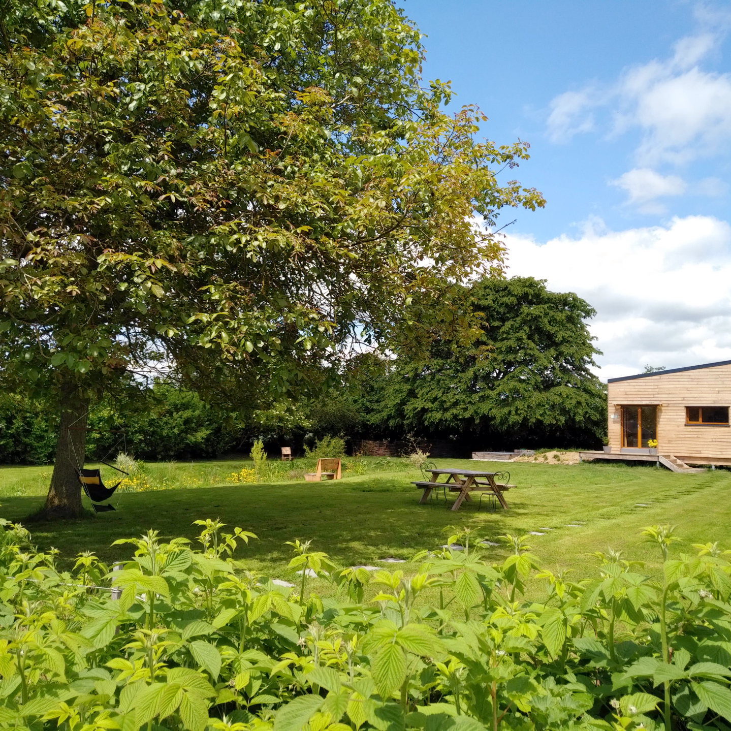 Ils ont imaginé un charmant cocon, situé à l’abri des regards, avec une vue magnifique sur la nature et le jardin. Nous voulons poursuivre leur projet, en partageant ce lieu et nos valeurs d’écologie, de sobriété et de reconnexion au vivant.